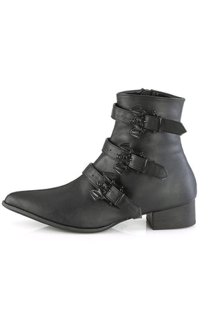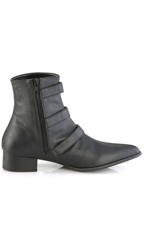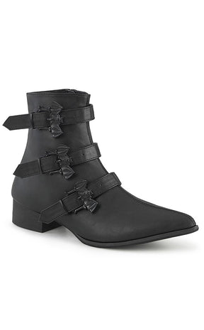 WARLOCK-50-B Black Vegan Winklepicker Bat Boots