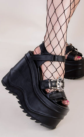 WAVE-13 Black Vegan Leather Platform Sandals