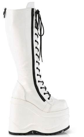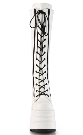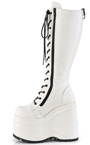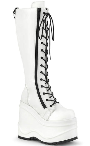 WAVE-200 White Vegan Leather Knee High Platform Boots