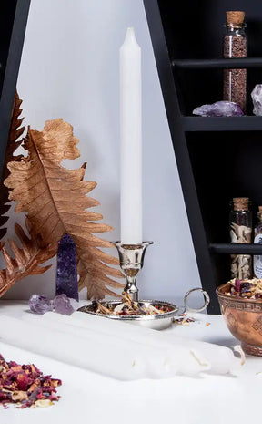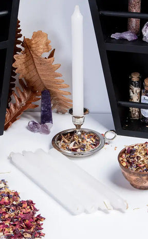 White candles are ideal for new beginnings and fresh starts. They can be used to connect with the angelic realm and spirit guides. Perfect for lunar magic and witchy rituals. Also great for aura cleansing.