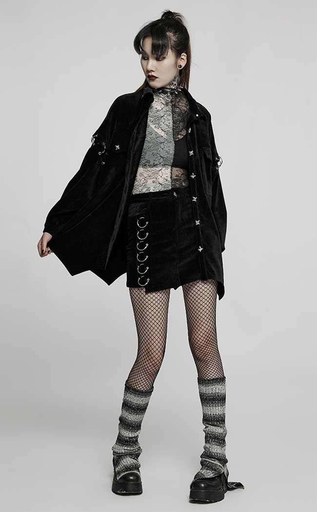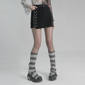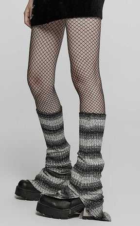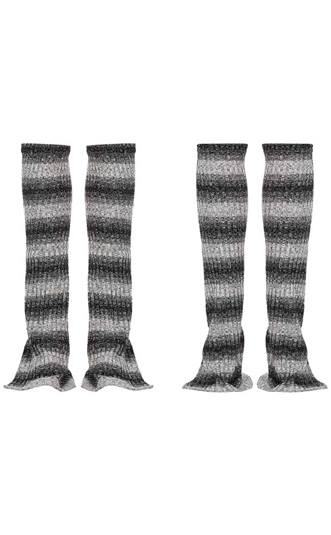 Run rabid in the Wild Things Legwarmers! These mall goth must-haves are super stretchy, sitting snug on yer legs just below the knee, flaring out at the ankles with a side slit. The ribbed fabric features ombre stripes to add a cheeky y2k touch to all yer lewks.