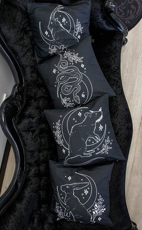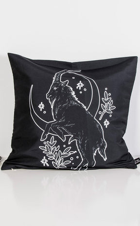 This beautiful cushion cover features Mendes moon bathing among the leaves, ready to assist you in spellcraft and relaxation. Lay him on your couch or bed to bewitch your guests and add a touch of nature to your home.