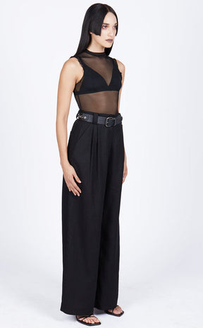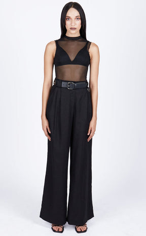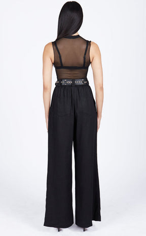 The Wraith Linen Wide Leg Trousers are a chic new fave for corpgoths and modern alternative style fiends. The flattering high-waisted fit sits comfortably on the waist with an elasticated back and an O ring, leading to a soft tailored front with pleats and pockets.