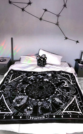 What's your sign? Get real cozy whilst having your dark soul purr - the 'Zodiac' velvety fleece blanket is sure to please. Extra large size with a huge graphic, perfect for your crypt, bed-cover or just midnight chill on the couch.- Soft Touch Fabric.